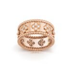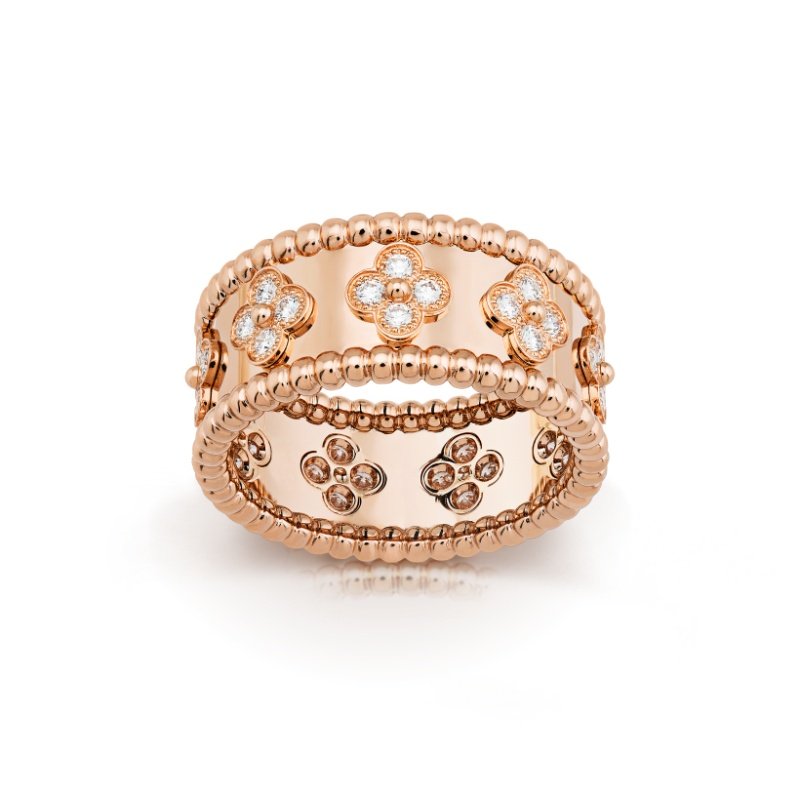 Perlee clovers ring, 18K rose gold, round diamonds, small model; diamond quality DEF, IF to VVS.