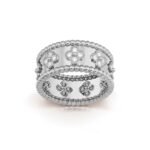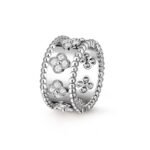 Perlee clovers ring, rhodium plated 18K white gold, round diamonds, small model; diamond quality DEF, IF to VVS.