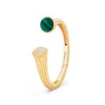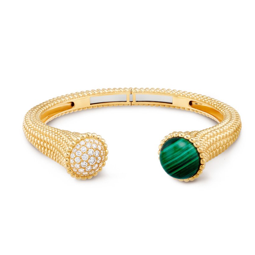 Perlee couleurs bracelet, 18K yellow gold, malachite, round diamonds, medium model; diamond quality DEF, IF to VVS.