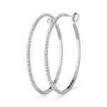 Perlée pearls of gold hoop earrings, rhodium plated 18K white gold, large model.