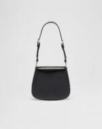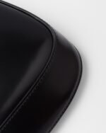 A perfect synthesis of classicism and futurism, the Prada Cleo bag reinterprets an iconic design from the brand’s archives. Sleek, curved lines emphasized by the particular sloping construction on the bottom and sides give this flap bag sophisticated allure, while the handle with extension makes the accessory functional and allows it to be worn as a shoulder bag or handbag. Brushed leather, a distinctive material of Prada collections, is a modern, chameleonic material that is perfect for always new combinations and contrasts. The enameled triangle logo completes the silhouette.