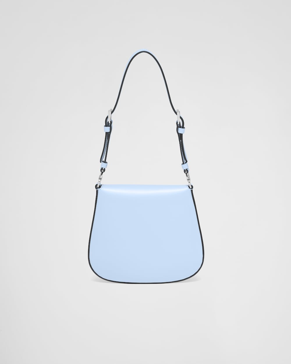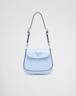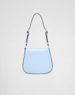 A perfect synthesis of classicism and futurism, the Prada Cleo bag reinterprets an iconic design from the brand’s archives. Sleek, curved lines emphasized by the particular sloping construction on the bottom and sides give this flap bag sophisticated allure, while the handle with extension makes the accessory functional and allows it to be worn as a shoulder bag or handbag. Brushed leather, a distinctive material of Prada collections, is a modern, chameleonic material that is perfect for always new combinations and contrasts. The enameled triangle logo completes the silhouette.