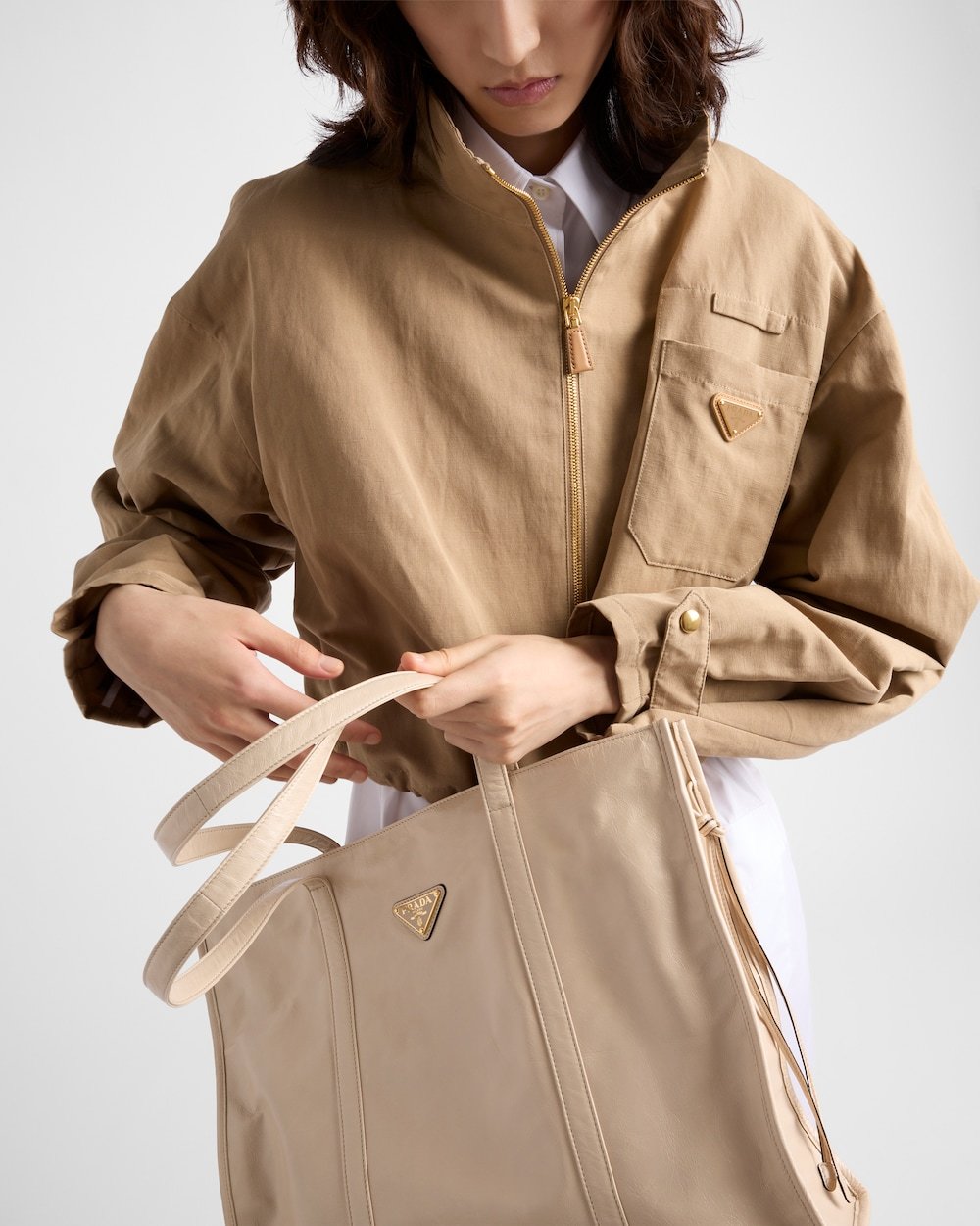 Logo-print Re-Nylon lining with two pockets, including one with zipper