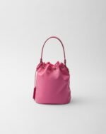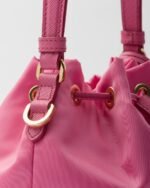 Functional and innovative Re-Nylon is the sustainable evolution of a distinctive material in Prada’s DNA, an expression of the brand’s original and unconventional aesthetic. This mini-bag made of regenerated nylon has an iconic bucket silhouette, a Re-Edition of an archive style, decorated with leather details and metal hardware. The exclusive and refined accessory, carried by a hand or worn with the removable shoulder strap, is embellished with the enameled metal triangle logo.