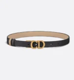 The Saddle belt has become a House icon and a wardrobe classic. It is offered in a reversible variation, thanks to its swivel feature. Crafted in black smooth calfskin on one side and powder beige on the other, it is embellished with an antique gold-finish metal CD buckle. The design also features two removable loops that can be worn in a tonal or contrasting fashion. The timeless accessory elegantly highlights the waist and will pair effortlessly with jeans, a skirt or a dress.