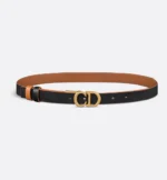 The Saddle belt has become a House icon and a wardrobe classic. It is offered in a reversible variation, thanks to its swivel feature. Crafted in black smooth calfskin on one side and golden saddle on the other, it is embellished with the antique gold-finish metal CD buckle. The design also features two removable loops that can be worn in a tonal or contrasting fashion. The timeless accessory elegantly highlights the waist and will coordinate well with jeans, a skirt or a dress.