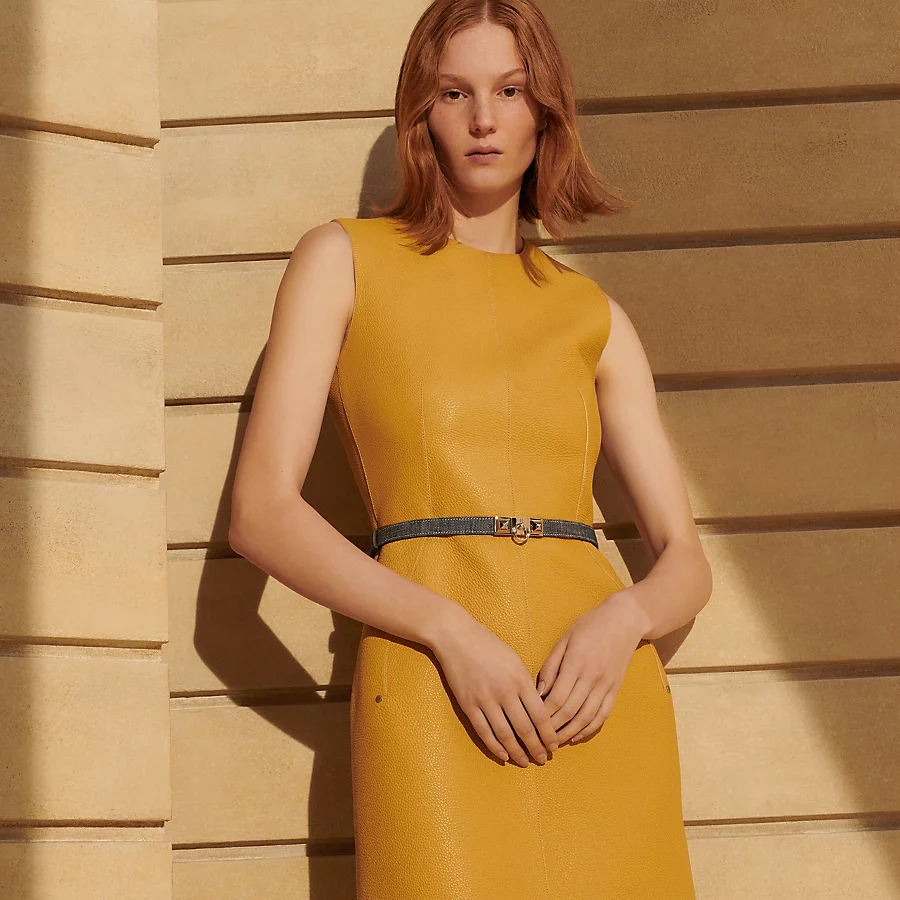 The Rivale buckle incorporates the iconic attributes of the legendary Collier de Chien with two M??dor studs and a central ring. Thanks to a clever slide system, this adjustable belt can be worn at the waist or on the hips.