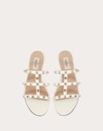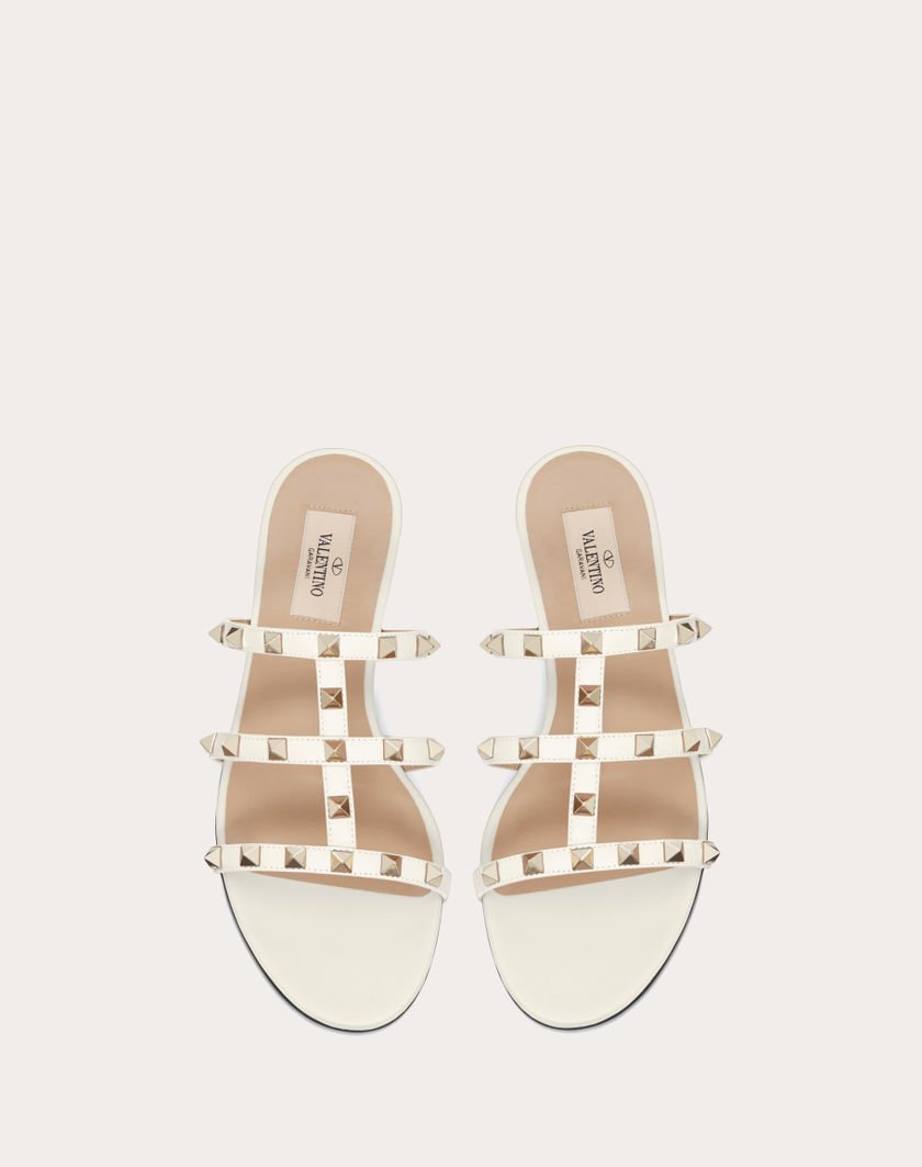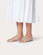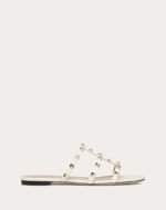 Valentino Garavani Rockstud flat sandal in calfskin leather.