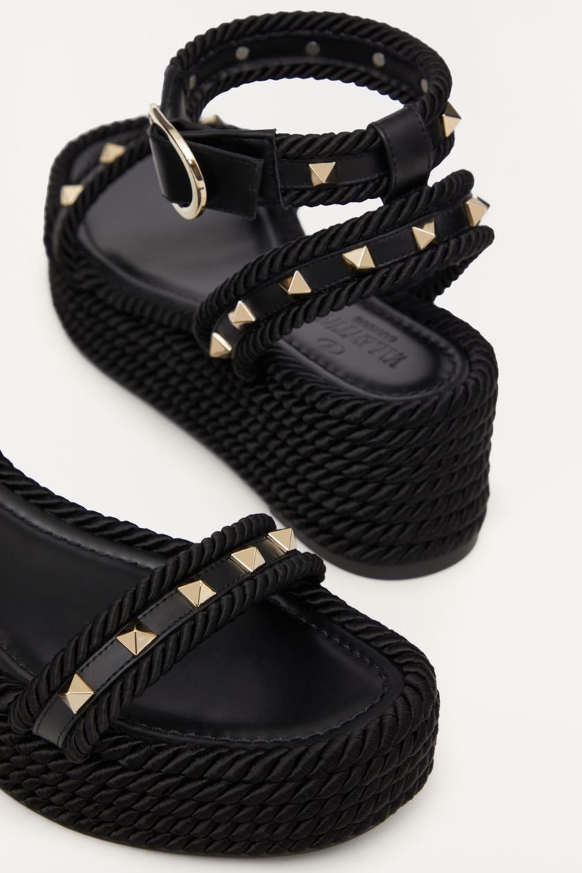 ROCKSTUD FLATFORM SANDAL IN CALFSKIN 45MM