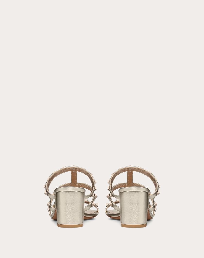 Valentino Garavani Rockstud sandal in metallic nappa leather.