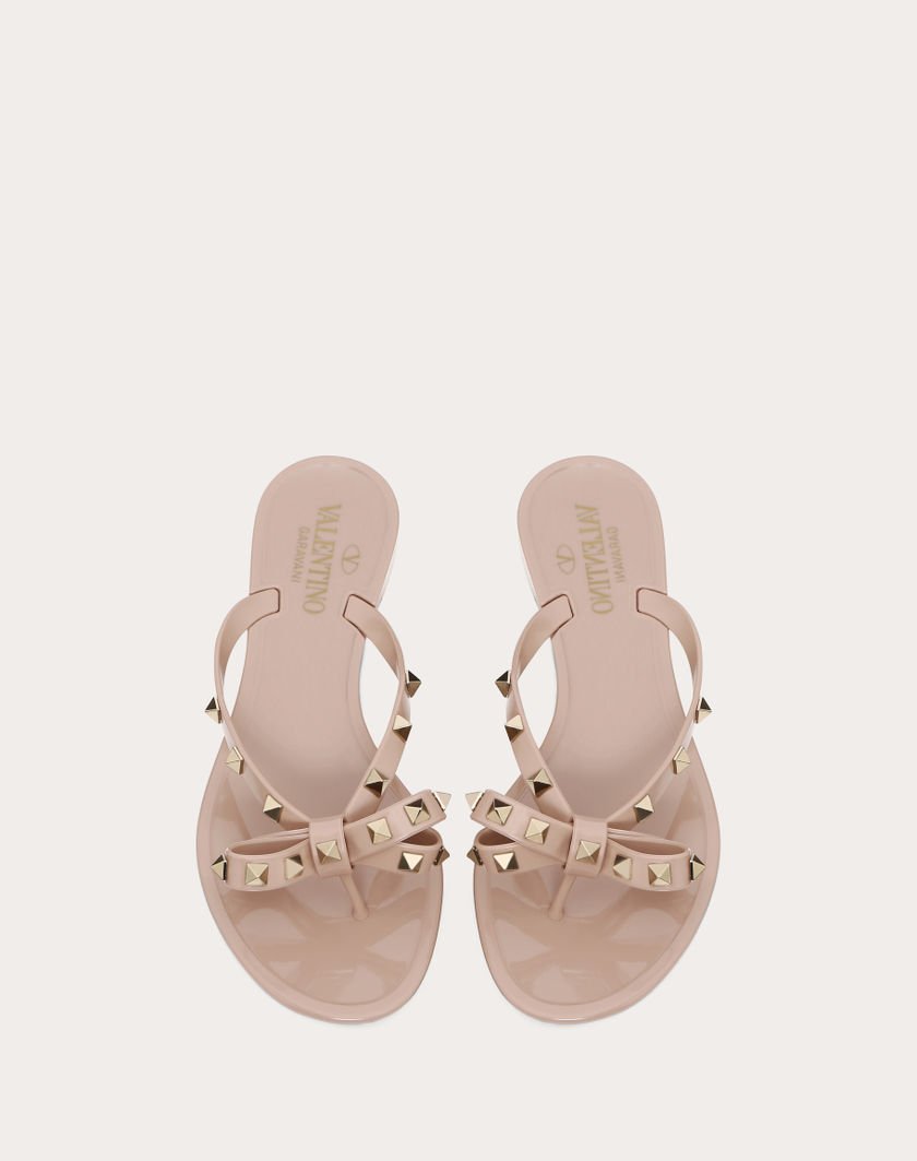 Valentino Garavani PVC sandal. Bow detail with platinum-finish studs