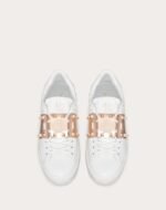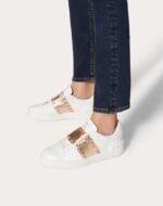 ROCKSTUD UNTITLED SNEAKER IN CALFSKIN LEATHER WITH METALLIC STRIPE