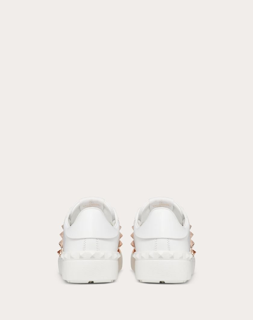 Valentino Garavani Rockstud Untitled sneaker in white calfskin leather.