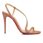Simplicity and refinement are combined in the Rosalie, a contemporary take on the classic stiletto sandal. The upper incorporates an innovative design, formed of a narrow strap with a two-piece construction, supported by a post strap. Starting in a sling-back, this strap winds around the foot, ending in a wavy design over the toe. This understated version comes in beige Blush kid leather with a slender 100 mm stiletto heel.