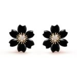 Rose de Nol earrings, small model, 18K yellow gold, onyx, round diamonds; diamond quality DEF, IF to VVS.