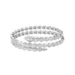 The Serpenti Viper bracelet in 18K white gold, fully pave-set with diamonds, is a signature style that combines pure beauty, circumferential shapes and allure, a simple and concise interpretation of the endless transformation and evolution of Bulgari’s classic creations. This glamorous jewelry piece embodies the powerful characteristics of the mysterious snake’s constant transformation, inspiring people to actively seek change and regard it as an inexhaustible source of strength and confidence. It is suitable for mixing and matching at will, providing a variety of styling options, showing the flexible and versatile style of the series.