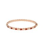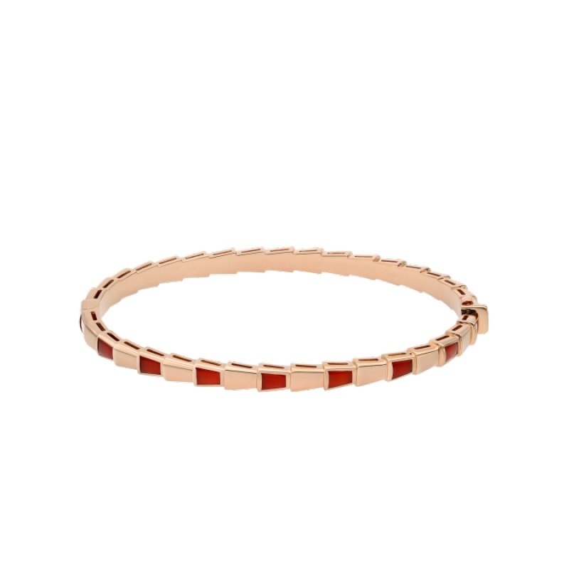 Coiling around the wrist like a sinuous serpent, this bracelet combines the beauty of precious scales with the danger of the snake’s coiling. Between light and shadow, intellectuality and sensuality, seduction and desire, the fascinating design fully demonstrates the irresistible contradictions in the nature of the snake. Serpenti Viper series 18K rose gold bracelet inlaid with carnelian. Width 4 mm.