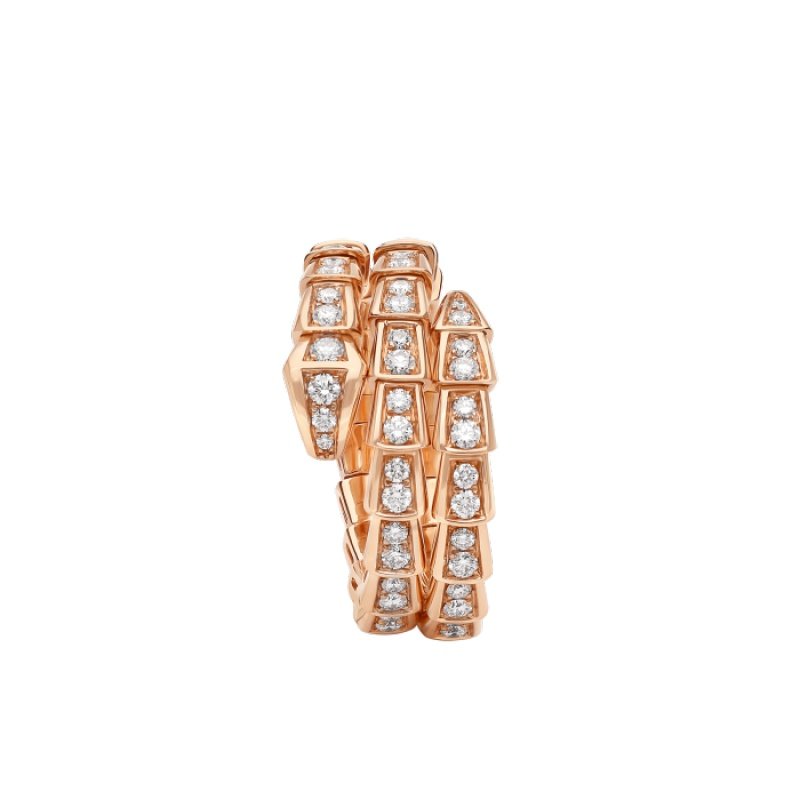 The Serpenti Viper ring in 18K rose gold, fully pave-set diamonds, is a signature style that combines pure beauty, circumferential shapes and allure, a simple and concise interpretation of the endless transformation and evolution of Bulgari’s classic creations. This glamorous jewelry piece embodies the powerful characteristics of the mysterious snake’s constant transformation, inspiring people to actively seek change and regard it as an inexhaustible source of strength and confidence. It is suitable for mixing and matching at will, providing a variety of styling options, showing the flexible and versatile style of the series.