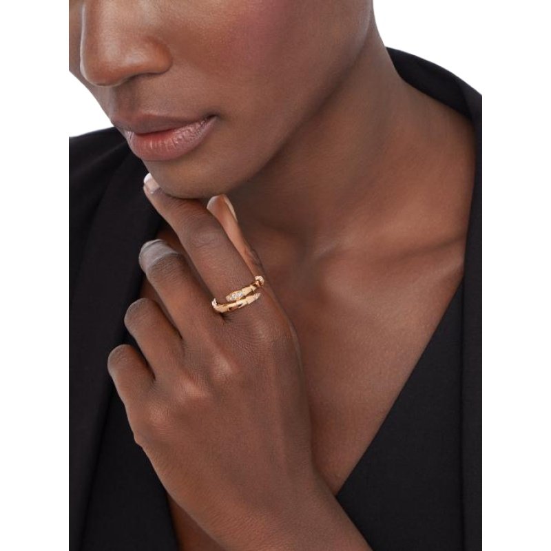 Serpenti Viper 18K rose gold ring, decorated with semi-pave diamonds