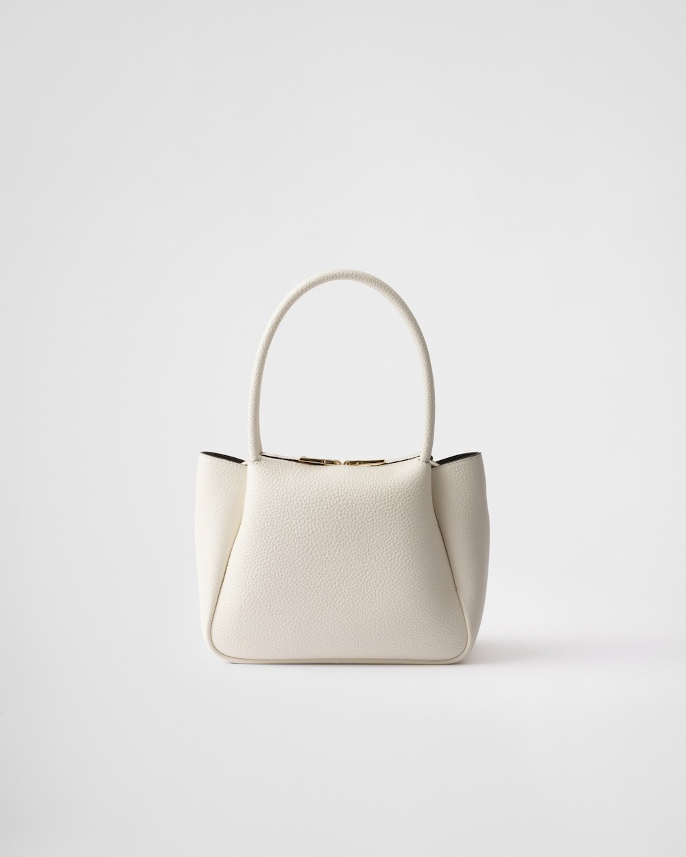 Contemporary and refined, this bag is crafted from textured leather with an inverted construction emphasizing its soft, rounded shape. The style, easy to carry by hand or over the shoulder, reveals a versatile soul, blending urban elegance and a sporty touch.