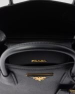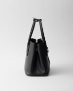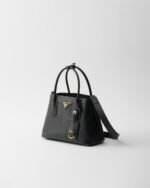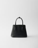 Delicate and refined details give new life to iconic brand designs like the Prada Double handbag, reinterpreted with a compact design. The tonal leather triangle frames the iconic metal lettering logo that gleams on the front, while the detachable shoulder strap makes it possible to also wear as a cross-body or shoulder bag.