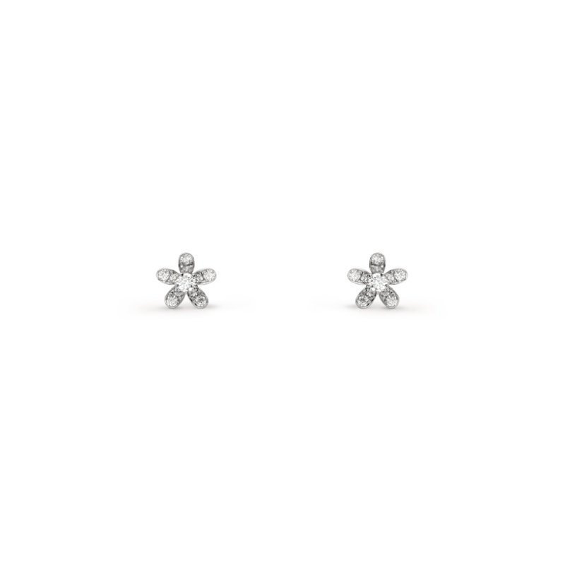 Socrate earstuds, 1 flower, rhodium plated 18K white gold, round diamonds; diamond quality DEF, IF to VVS.