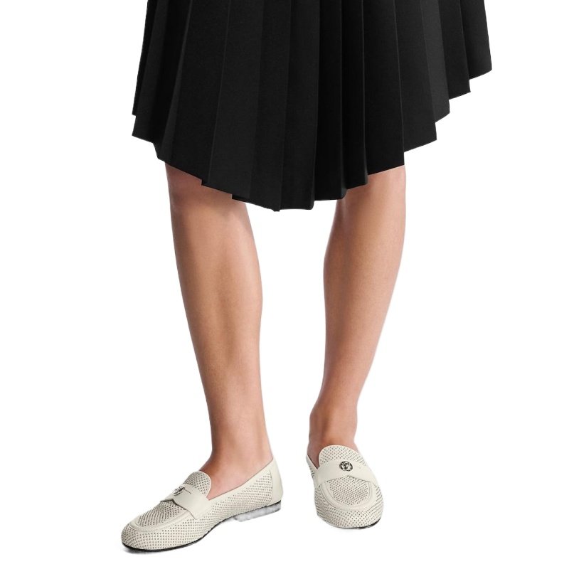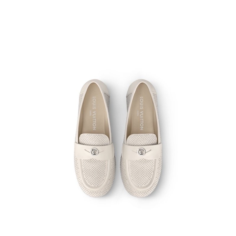 The Soho flat loafer is reinterpreted this season in supple lambskin, which is decorated with dozens of tiny, silver-toned studs. This refined model is distinguished by its sleek lines, rounded toe and cut-out strap, which is signed with an LV Circle accessory. A fine leather outsole completes this design.