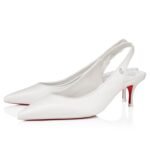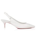 The Sporty Kate Sling pump crafted from nappa leather in Bianco white and featuring a delicate 55 mm kitten heel is the embodiment of elegance. The closed toe contrasts with the open slingback and fine stitching adorns each edge. Detailed with the iconic Maison Christian Louboutin initials and embellished with a daring Loubi red sole, this slingback makes a statement.