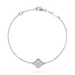 Sweet Alhambra bracelet, 1 motif, rhodium plated 18K white gold, round diamonds; diamond quality DEF, IF to VVS.