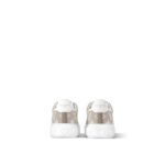 The Time Out sneaker is revisited this season in all-over Monogram denim for a casual-chic look. One of Louis Vuitton’s emblematic styles, this model is notable for its chunky yet lightweight rubber outsole, which is decorated with Monogram Flowers. White laces and engraved, gold-tone eyelets complement this design.