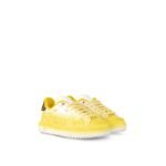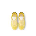 The emblematic Time Out sneaker is reworked this season in soft calf leather, which is debossed with a Monogram pattern with a color fading effect. This richly detailed design also features an oversized Vuitton signature on the side, a LV upcycling logo embroidered on a slightly padded tongue and a thick textile tone on tone laces. Its distinctive elevated, treaded rubber outsole is decorated with a 3-D pattern of Monogram Flowers.