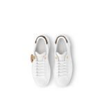 This edition of the emblematic Time Out sneaker is made of soft calf leather, which is partially debossed with the Monogram pattern. It is complemented by novel details, notably a key bell in natural leather with a playful animal face. Monogram-canvas trim at the back and engraved, gold-toned eyelets further enhance this design.