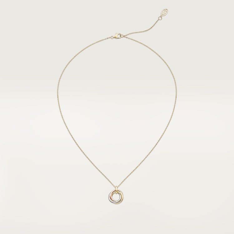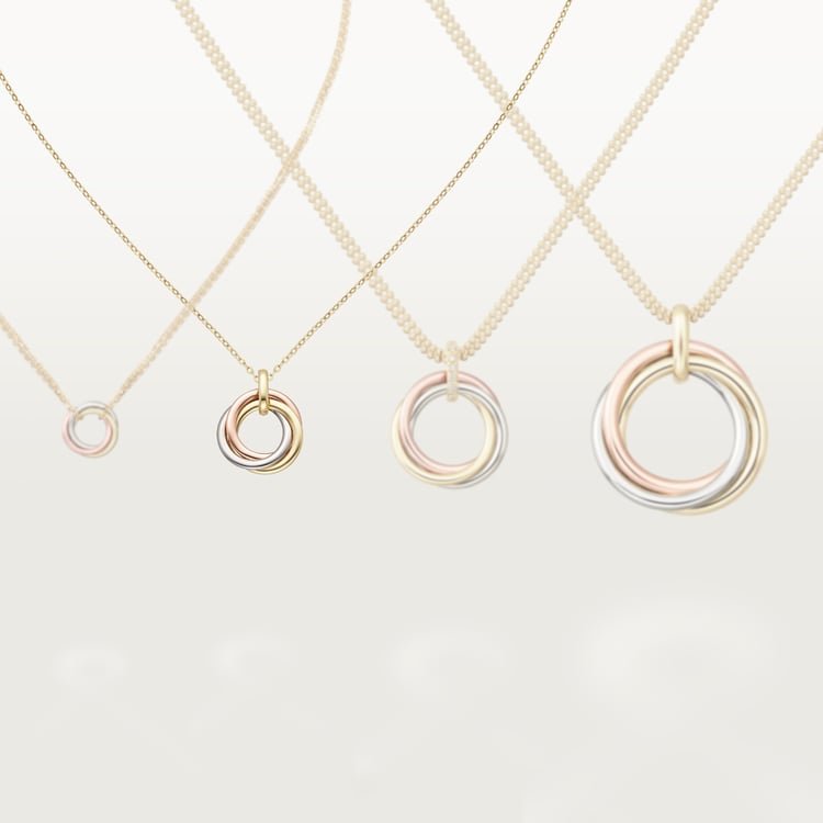 Product Description:Trinity necklace Medium model 18K white gold (750/1000) 18K rose gold (750/1000) 18K yellow gold (750/1000) 18K yellow gold (750/1000) chain Inner diameter:15.3 mm Adjustable chain length:38-42 cm