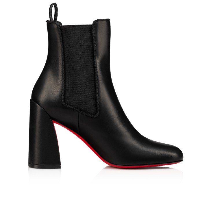 The Turelastic booty is a slim, elegant ankle boot with tapered lines and a toe that??s somewhere between curved and pointy. It features a sculpted, almost crescent-shaped, 85 mm sabot heel that exudes sophisticated simplicity. This very wearable model by Maison Christian Louboutin is ideal for autumn days and is crafted from oiled calf leather in all-over black, for a timeless style that works with any outfit.