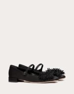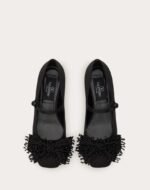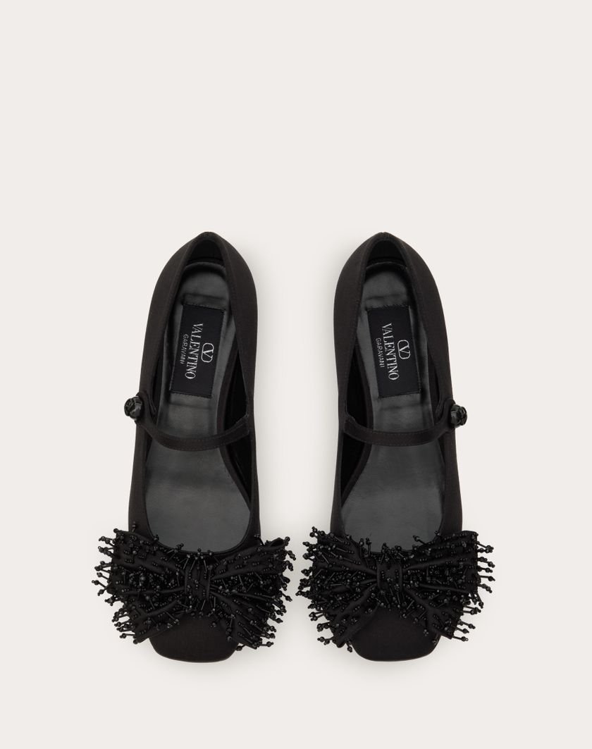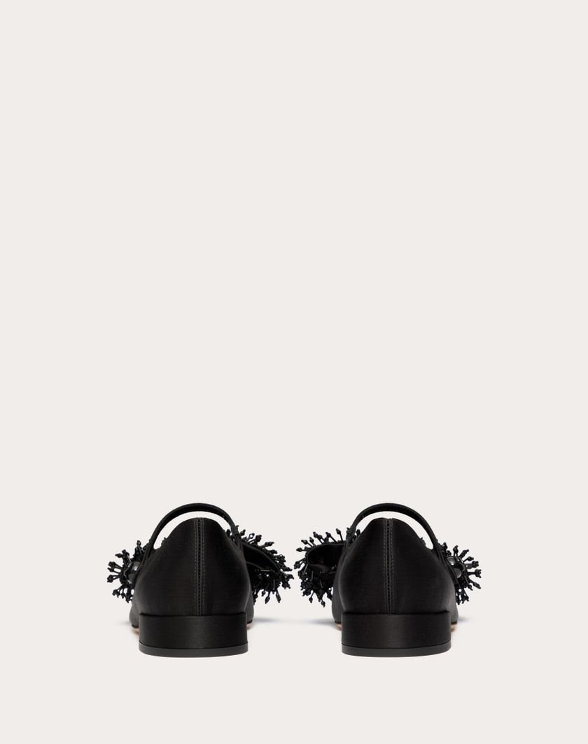 VALENTINO GARAVANI BOWJANE MARY-JANE SATIN BALLERINA WITH FRINGED EMBROIDERY 20MM