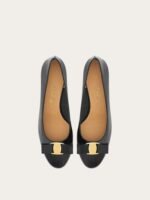 An update to a classic, these elegant pumps are crafted from supple and smooth calfskin. They are embellished with the iconic Vara bow and metal logo plate. Set on a low block heel.