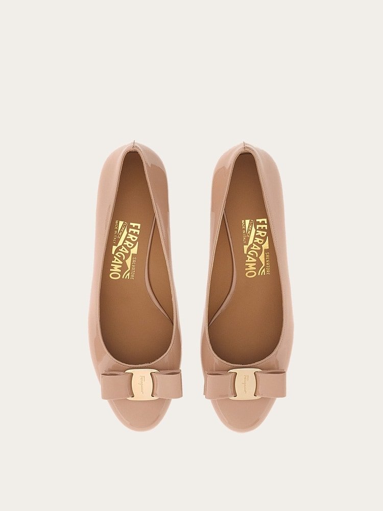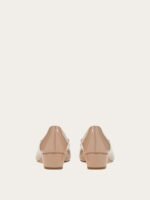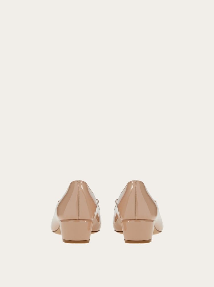 A modern twist on a classic shoe with iconic elements and timeless style. The perfect investment piece for your forever wardrobe, this Ferragamo pump is the height of feminine elegance. Made of naplak in a shade of Italian amaretti with a smooth finish. The rounded toe is graced with a tonal Vara bow and a metal buckle with a palladium finish. Simply chic.