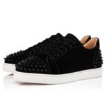 Echoing the style codes of the 1980s tennis shoe, the Vieira 2 is a new twist on a timeless design, showcasing Christian Louboutin’s love of blending textures and materials, for a daring modern effect. This model, in all-over black, features an ultra-soft veau velours, neatly encased with a couture grosgrain ribbon trim. In an audacious twist, the toe and heel are adorned with signature glossy black spikes.