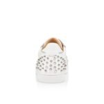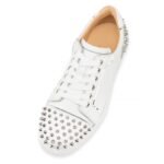 The Vieira 2 low-top sneaker stands out for its nude calfskin lined interior, and sits on a white rubber sole. Its white calfskin upper highlighted by silver laminated calf leather finishes is enhanced by metallic signature spikes. This dynamic and sophisticated minimalist shoe features the elegant lines so characteristic of Maison Christian Louboutin.