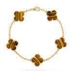 Vintage Alhambra bracelet, 5 motifs, 18K yellow gold, tiger’s eye.