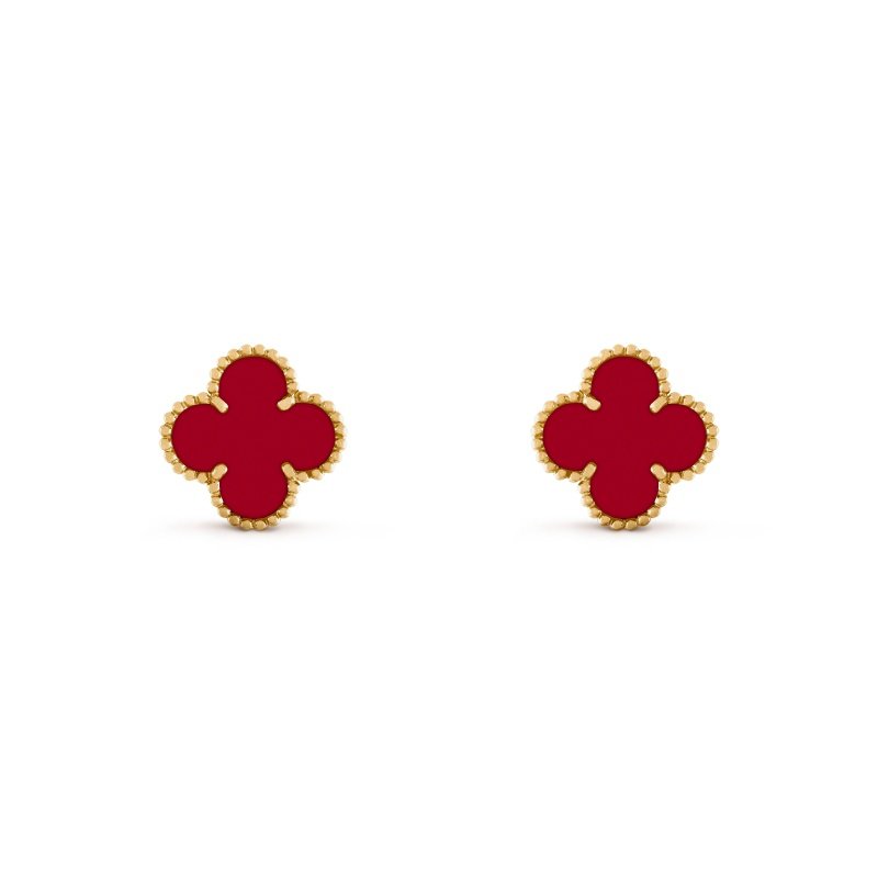 Vintage Alhambra earrings, 18K yellow gold, carnelian.