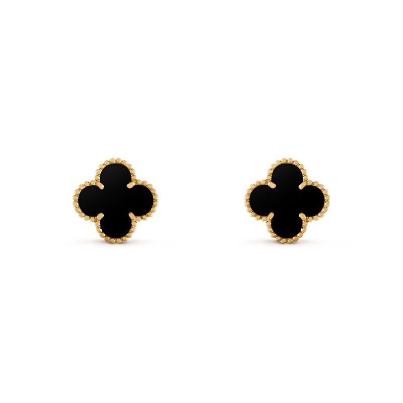 Vintage Alhambra earrings, 18K yellow gold, onyx.