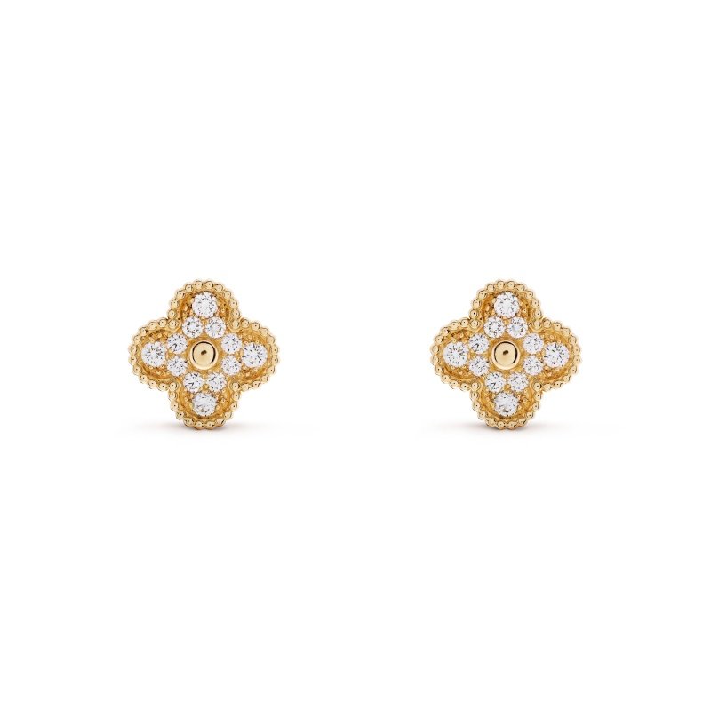 Vintage Alhambra earrings, 18K yellow gold, round diamonds; diamond quality DEF, IF to VVS.