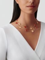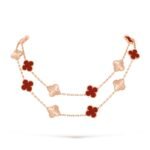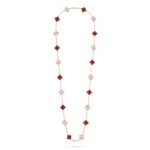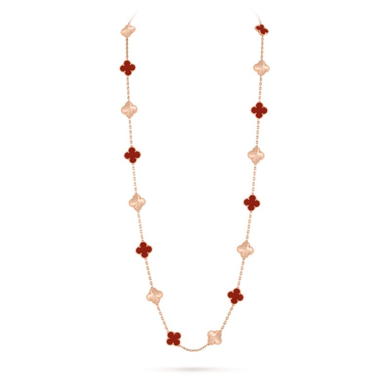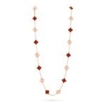 Vintage Alhambra long necklace, 20 motifs, guilloché 18K rose gold, carnelian.
