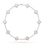 Vintage Alhambra necklace, 10 motifs, rhodium plated 18K white gold, white mother-of-pearl.