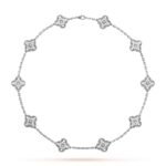 Vintage Alhambra necklace, 10 motifs, rhodium plated 18K white gold, round diamonds; diamond quality DEF, IF to VVS.