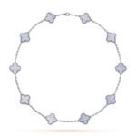 Vintage Alhambra necklace, 10 motifs, rhodium plated 18K white gold, chalcedony.
