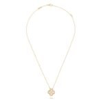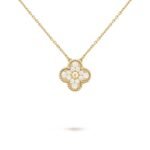 Vintage Alhambra pendant, 18K yellow gold, round diamonds; diamond quality DEF, IF to VVS.The pendant is attached to the necklace’s chain