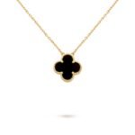 Vintage Alhambra pendant, 18K yellow gold, onyx.The pendant is attached to the necklace’s chain