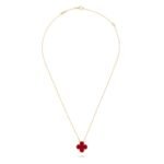 Vintage Alhambra pendant, 18K yellow gold, carnelian.The pendant is attached to the necklace’s chain